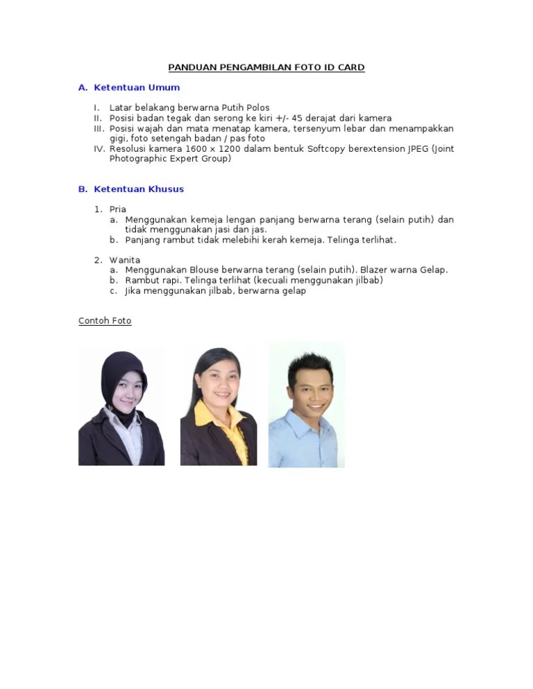Foto yang anda unggah akan digunakan pada kartu ujian. Berikut ini adalah syarat foto yang akan diunggah. Perhatikan ketentuan foto yang diunggah agar tak gagal saat mendaftar casn. Pasfoto ini diambil dari istilah belanda yang menunjuk pada foto setengah badan yang sifatnya resmi karena digunakan sebagai pelengkap pada . Pose ini dapat melatih anak menjadi supermodel lho!